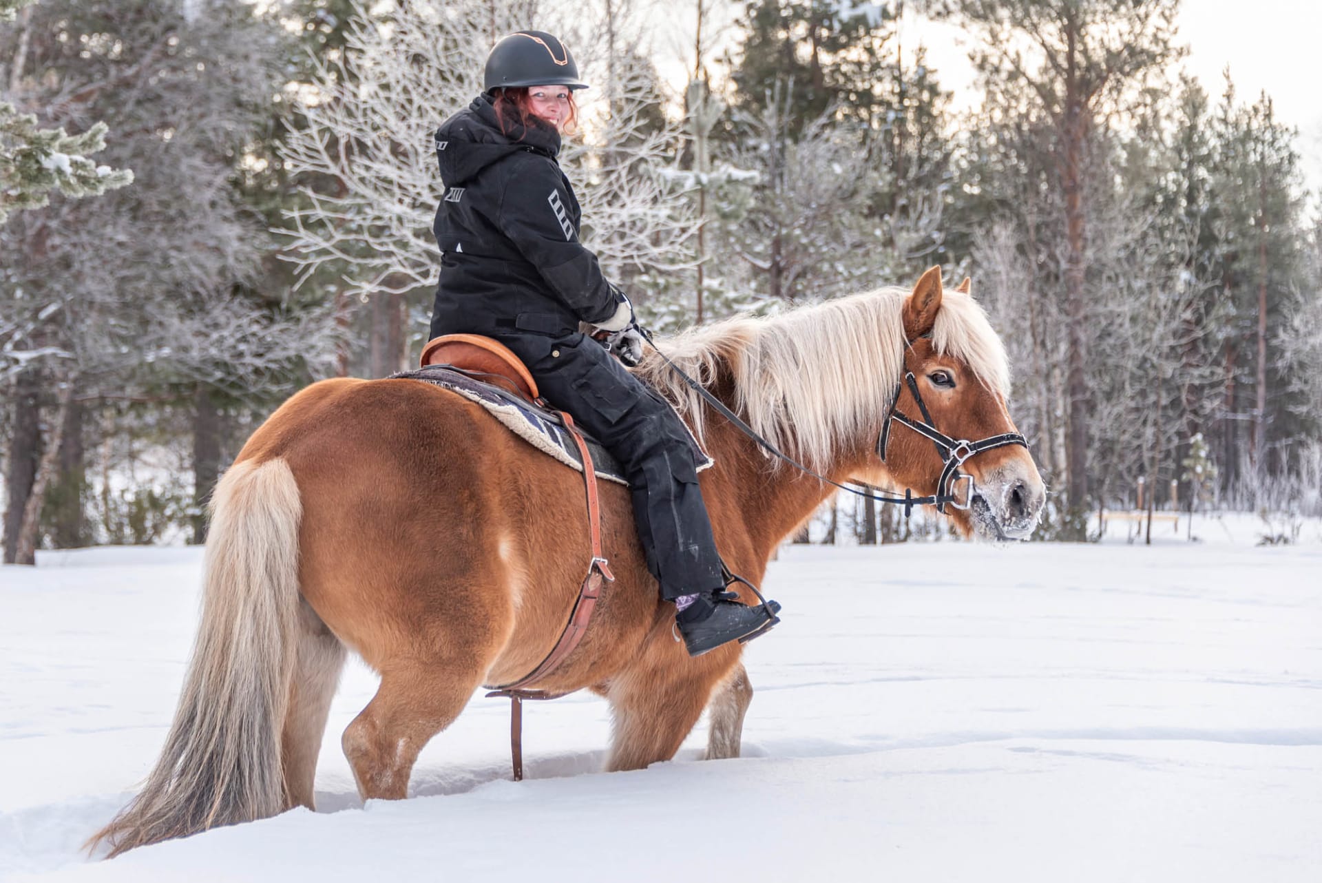 Unohtumaton kahden tunnin ratsastusretki lumisissa maisemissa suomenhevosilla. Opastettu retki sopii kaikille taitotasolle. Tervetuloa mukaan!